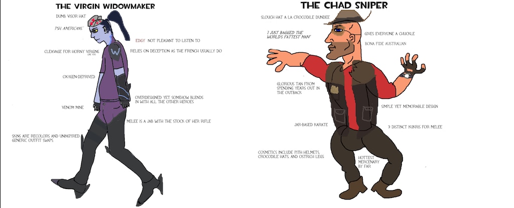 The Virgin Widowmaker Vs The Chad Sniper By Foreskin Feta Virgin Vs Chad Know Your Meme - For more information on how rudeism created this.